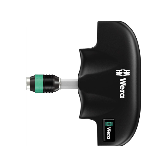 WERA T-handle Rapidaptor for rapid insertion of bits without any special tools. The integrated magnet securely holds the bit during screw driving. The ideal handle shape makes the transfer of higher tightening and loosening torque possible. The ergonomic design of the handle fills the palm of the hand and the fingers rest in the soft, rounded recesses. The whole hand is in contact with the handle so there is no frictional loss between the hand and the handle.