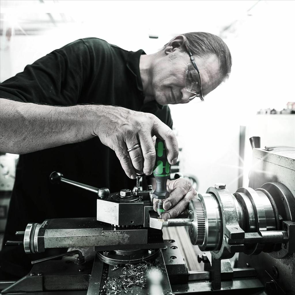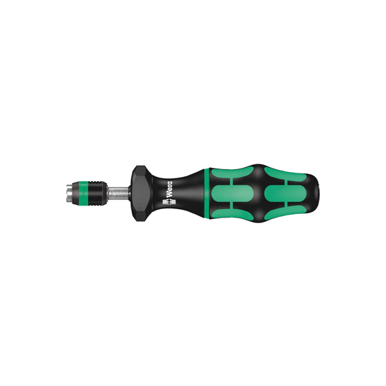 Wera torque screwdriver. Variable torque setting option with highest precision. Simple adjustment of the required torque value without any special tools. Easy-to-read scale value and audible click signal. Rapidaptor quick-release technology for rapid bit change. Unlimited torque to loosen seized screws. Multi-component Kraftform handle with hard and soft zones for high working speeds whilst being easy on the hand. Suitable for bits with ¼” hexagon head drive.