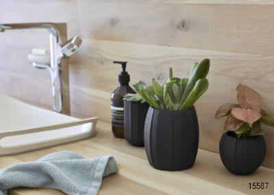 This handmade indoor planter is inspired by contemporary architecture. Combined with plants this series will complement the green lifestyle in a stylish way. This texture has broad, vertical lines. These raw lines make these planters a bit futuristic.