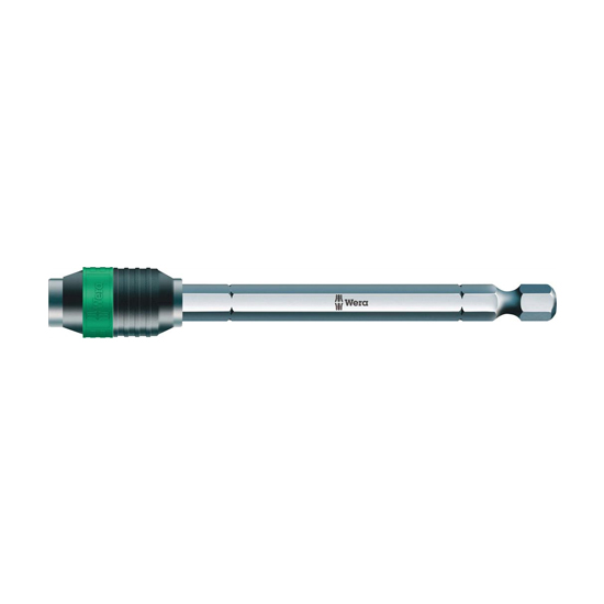 Universal Rapidaptor bit holder with 1/4 "hex shank according to DIN ISO 1173-C 6.3 and E 6.3 (ISO 1173). Rapidaptor allows you to insert bits even without using a sleeve. Removing the bits is done by simply sliding the sleeve forward - instant bit change even with one hand. Strong permanent magnet holds the bits with a dead grip. 1/4 "external hex shank suitable for use in screwdrivers with DIN ISO 1173-F 6.3 chuck.