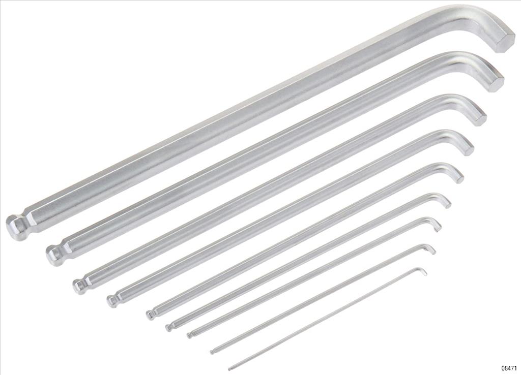 High quality l-key set with extra-short Arm for use on difficult-to-access screws. For hexagon socket screws. Hex-plus offers a greater contact surface in the head of the screw. The notching effect is therefore reduced to a minimum and damage to the screw head more or less eliminated.