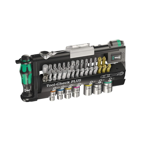 Combination tool consisting of a ratchet, bits, sockets and holder in a minimum of space. Ideal as a universal companion for a whole host of screw driving applications.