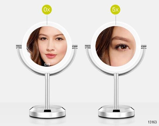 A mirror specifically designed for make up. Lights & close up view, the details are clearly visible.