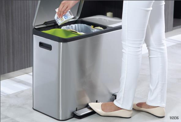 Stylish form meets convenient function in the ECO-CASA Step trash can collection. Choose the size and inner configuration that helps you best manage your waste and recyclables. Single, dual and triple compartment versions with color-coded inner liners make responsible waste management a breeze.