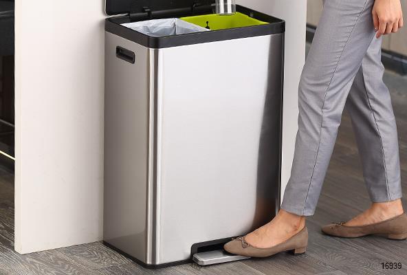 Stylish form meets convenient function in the ECO-CASA Step trash can collection. Choose the size and inner configuration that helps you best manage your waste and recyclables. Single, dual and triple compartment versions with color-coded inner liners make responsible waste management a breeze.